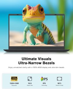• 1080P FHD IPS VISUALS – Enjoy a vibrant visual experience on the 15.6 inch FHD IPS display with a resolution of 1920 x 1080 pixels and a 100% sRGB color gamut for a vivid visual experience. The stunning 16:9 widescreen display with a 93% screen-to-body ratio gives you more space to watch movies, edit photos, or browse the web.