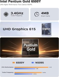 • SMOOTH PERFORMANCE – The Laptop Featuring Pentium Gold Processor that can boost up to 3.4 GHz with 4-Thread, 4MB Smart Cache, which can easily handle lightweight office tasks and daily applications, bringing a smooth experience.